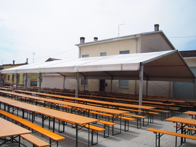 Tendoni per feste e tendostrutture perfette per svariate occasioni: dalla sagra di paese alle feste, fino agli eventi sportivi, alle mostre, matrimoni, sfilate di moda, manifestazioni culturali e altro. Offrono riparo in caso di freddo, pioggia e vento come dal caldo sole estivo.